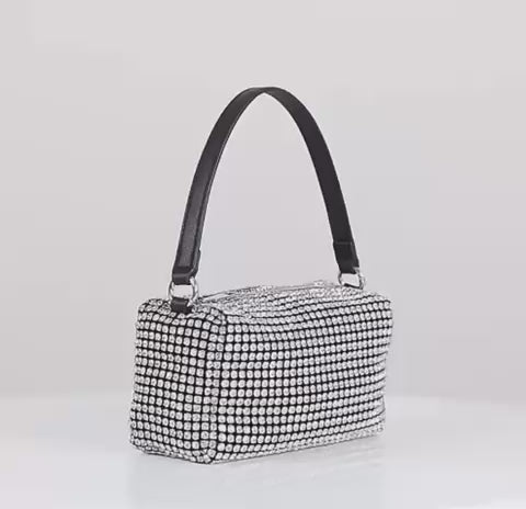 Our crystal bags are handcrafted with high-quality rhinestones, meticulously applied to create a striking, couture-level finish. Due to the nature of these embellishments and their artisanal application, we kindly advise caution when styling with satin or other delicate fabrics, as contact may cause friction or snagging. This piece is designed to be carried by hand and enjoyed for special occasions. It is not intended for casual, everyday use. Diamorelle cannot be held responsible for any damage to garments resulting from wear. Thank you for cherishing the craftsmanship behind this limited creation.